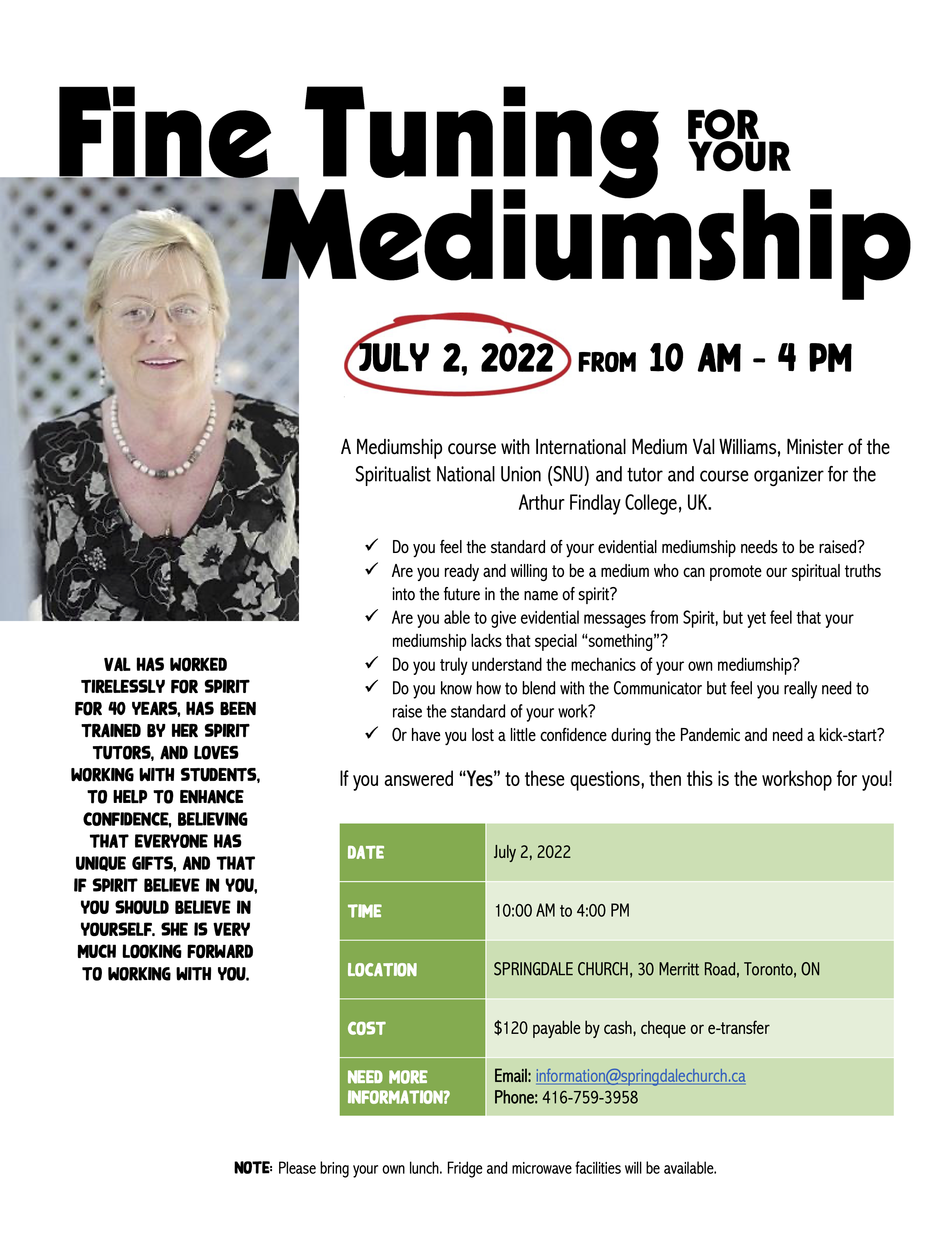 We invite you to join us for this workshop with International Medium Val Williams! Full details are in the poster.
